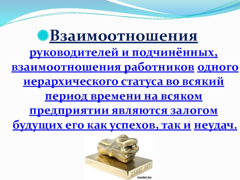 Слайд 26Взаимоотношения руководителей и подчинённых, взаимоотношения работников одного иерархического статуса во всякий