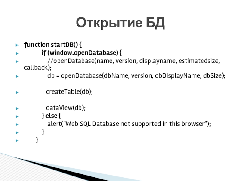 Открытие БД
