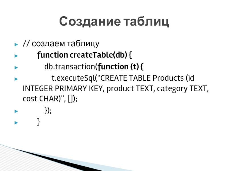 Создание таблиц