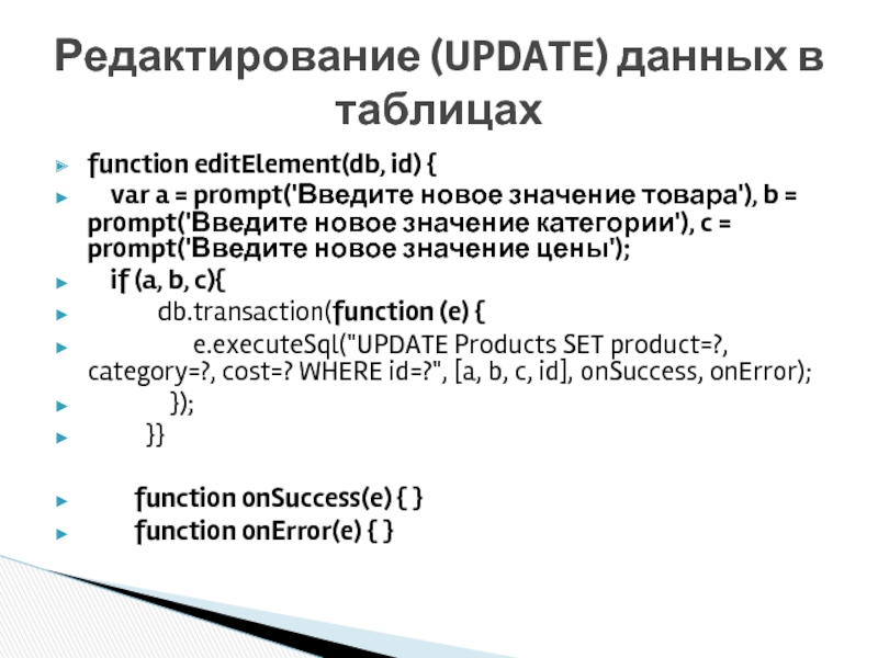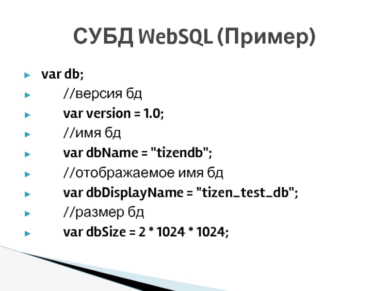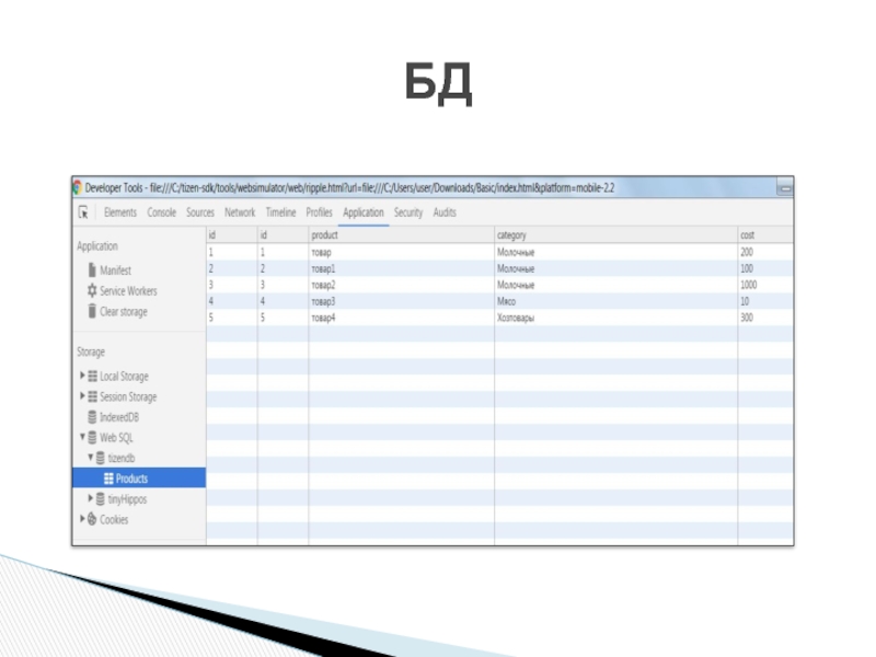 СУБД WebSQL (Пример)