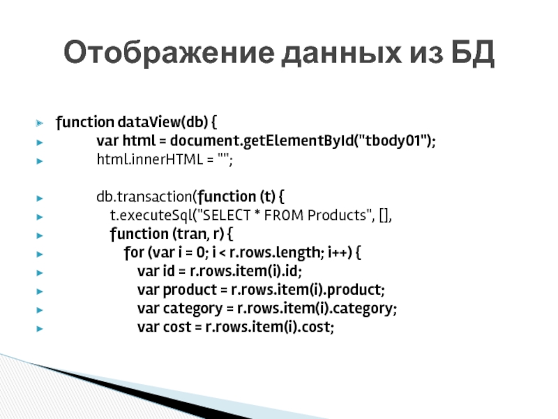 Отображение данных из БД