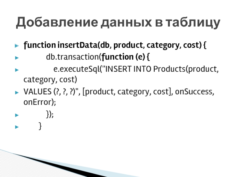 Добавление данных в таблицу