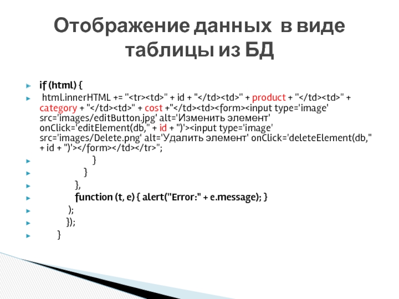 Отображение данных в виде таблицы из БД
