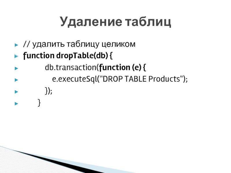 Удаление таблиц