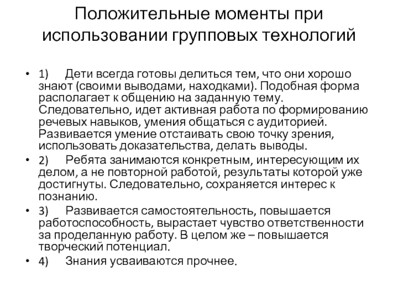групповые формы взаимодействия намного прочнее удерживают внимание ученика и его включенность в работу, чем, например, работа у доски одного ученика.