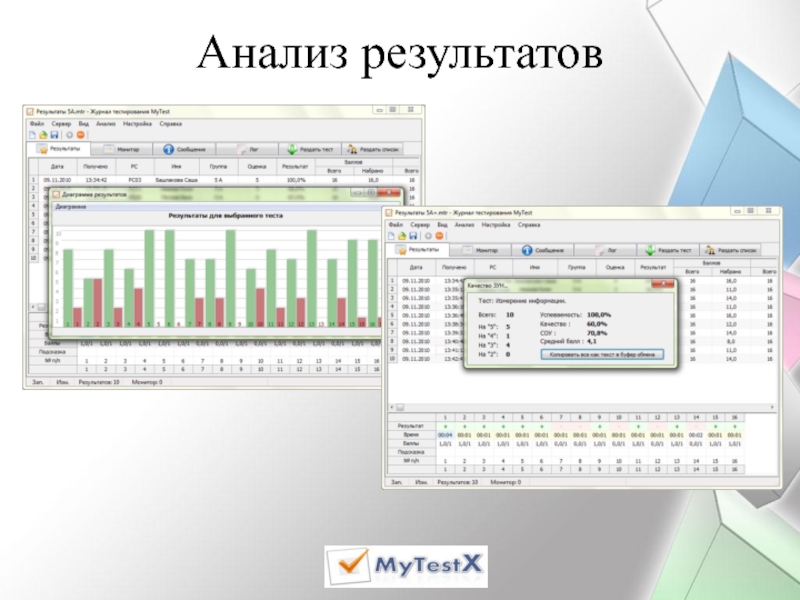 получение результатов сразу по завершении теста