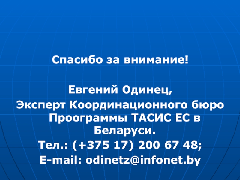 эксперт Координационного бюро Программы ТАСИС Европейского Союза в Республике Беларусь