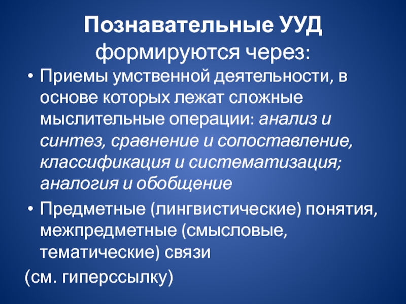 мыслительные операции: анализ и синтез, сравнение и сопоставление, классификация и систематизация; аналогия и обобщение