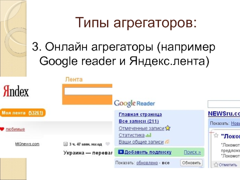Слайд 16Типы агрегаторов RSS
