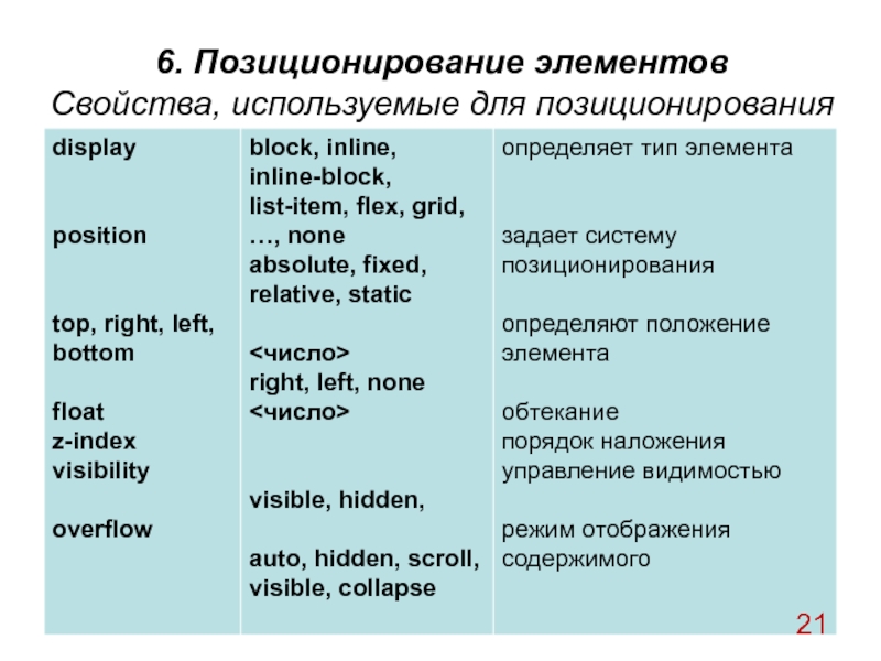 Наследование: border-collapse, border-spacing, caption-side, color, cursor, direction, empty-cells, font-family,