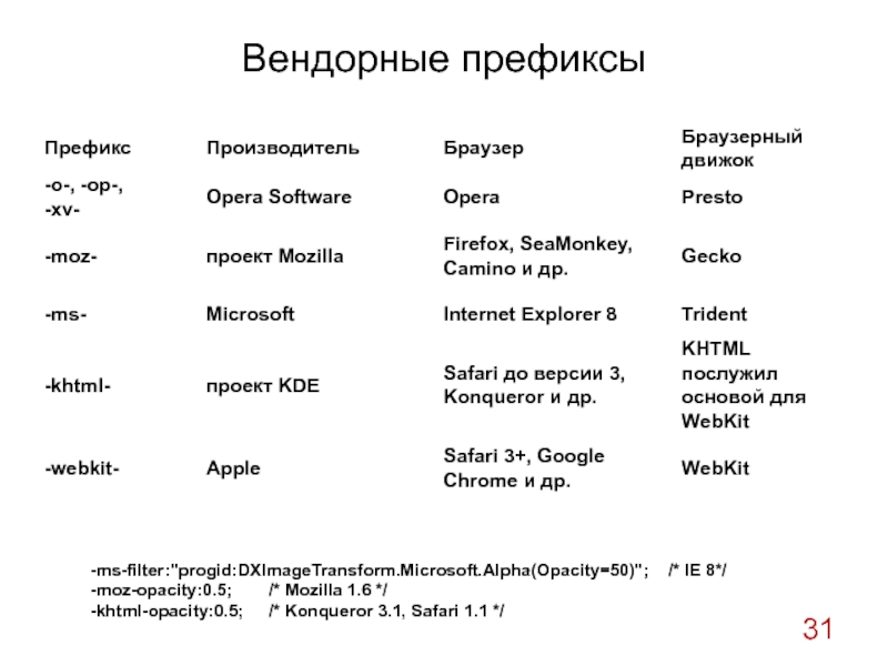 -khtml-opacity:0.5; /* Konqueror 3.1, Safari 1.1