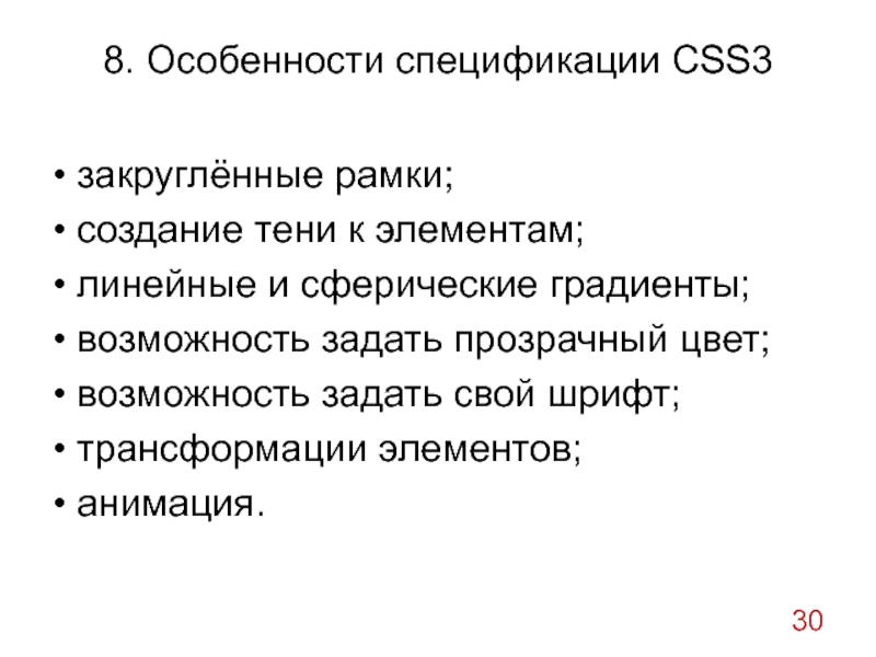 Список анимированных (для Safari и Chrome используется @-webkit-keyframes) переходов(ключевых кадров).