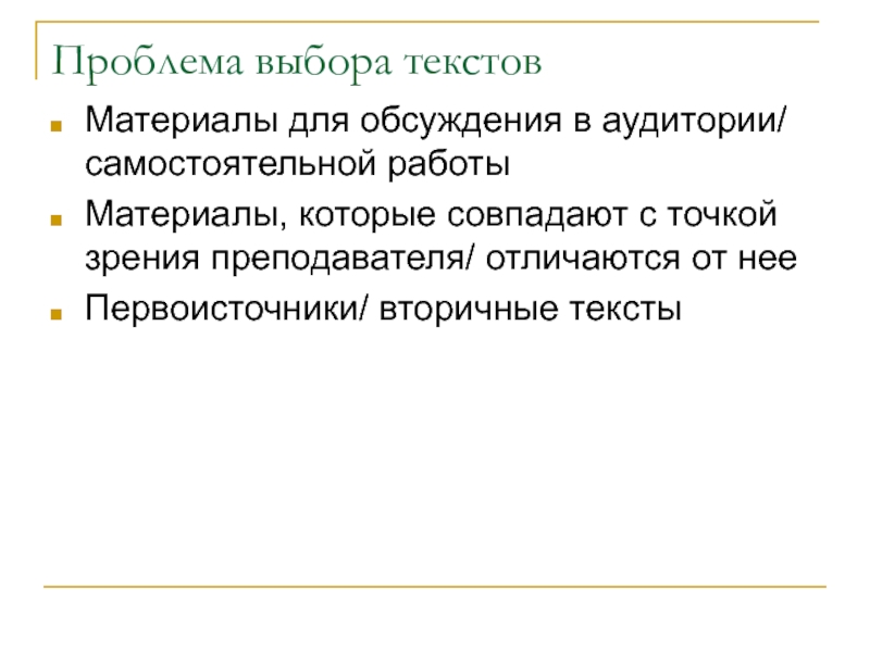 Уровень текстов должен соответствовать интеллектуальному уровню студентов
