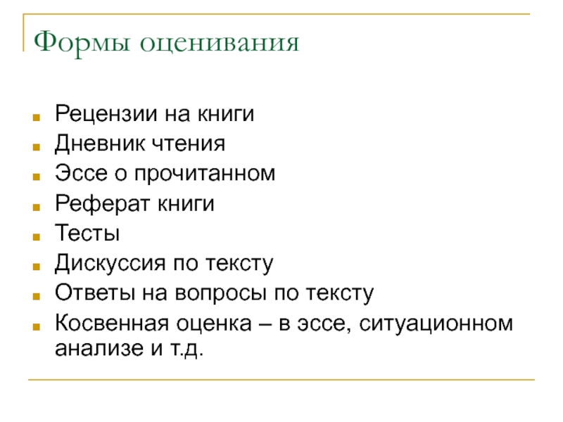 Косвенная оценка – в эссе, ситуационном анализе и т.д.