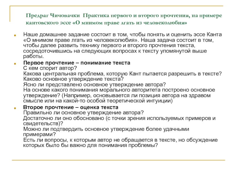 Слайд 16Предраг Чичовачки Практика первого и второго прочтения, на примере кантовского эссе