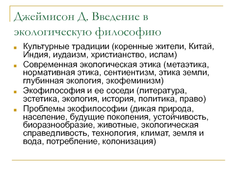 Слайд 19Джеймисон Д. Введение в экологическую философию