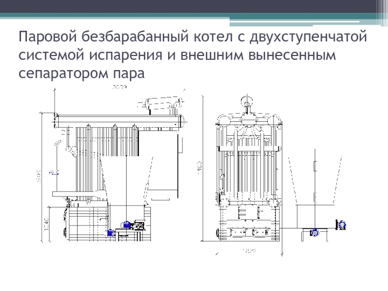 Слайд 11Паровой безбарабанный котел с двухступенчатой системой испарения и внешним вынесенным сепаратором