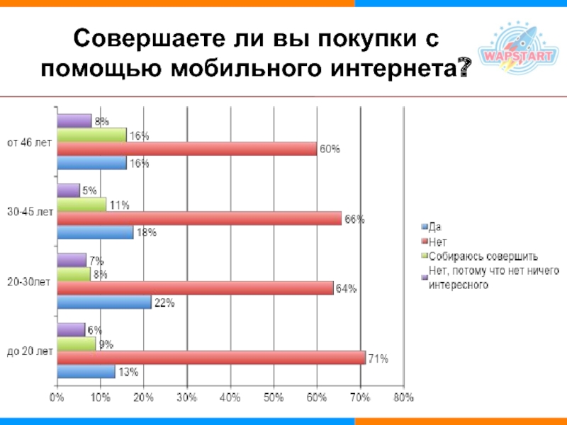 Слайд 10Совершаете ли вы покупки с помощью мобильного интернета?