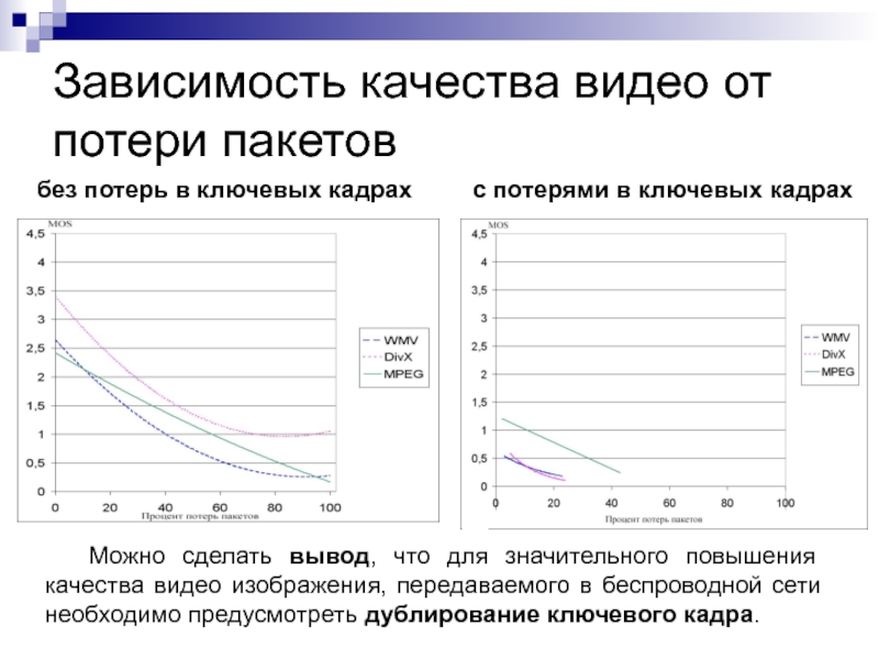 Можно сделать вывод, что для значительного повышения качества видео изображения, передаваемого в беспроводной сети необходимо предусмотреть дублирование ключевого кадра.