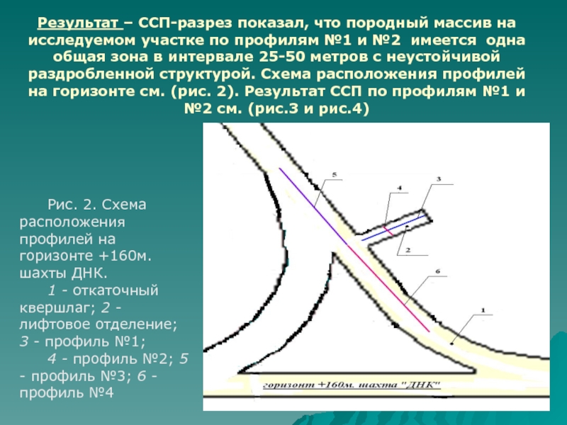 Рис. 2. Схема расположения профилей на горизонте +160м. шахты ДНК.