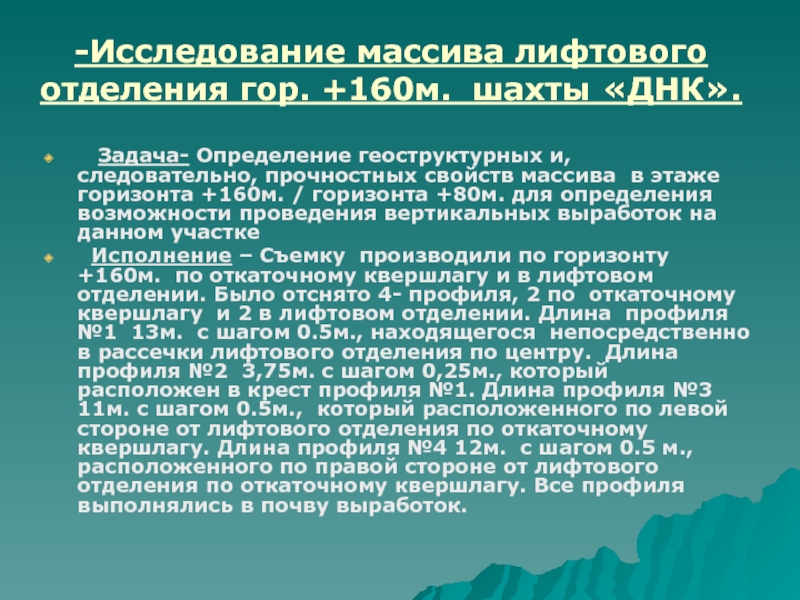 Исследование нарушений в массиве этажа - 164 м / - 215 м по шахте «Молодежная» .