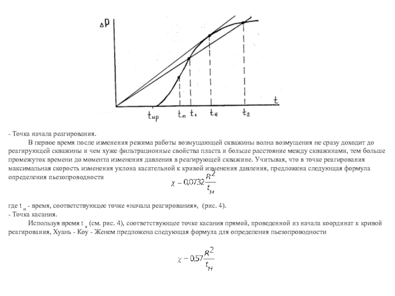 Используя время t к (см. рис. 4), соответствующее точке касания прямой, проведенной из начала координат к кривой реагирования, Хуань - Коу - Женем предложена следующая формула для определения пьезопроводности