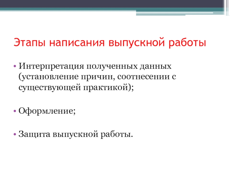 Интерпретация полученных данных (установление причин, соотнесении с существующей