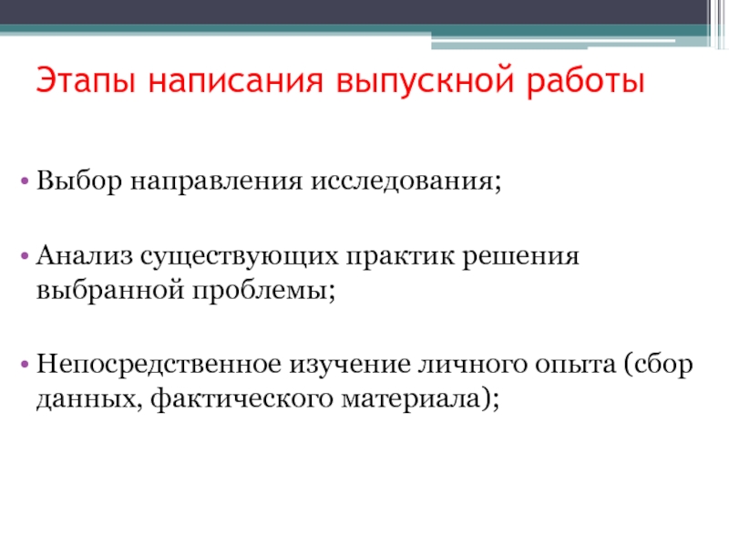 В работе не рекомендуется вести изложение от первого лица («я пришел к выводу...», «я считаю...»). Предпочтительно использовать выражения: «проведенное исследование показало…», «в результате проведенного наблюдения установлено…».