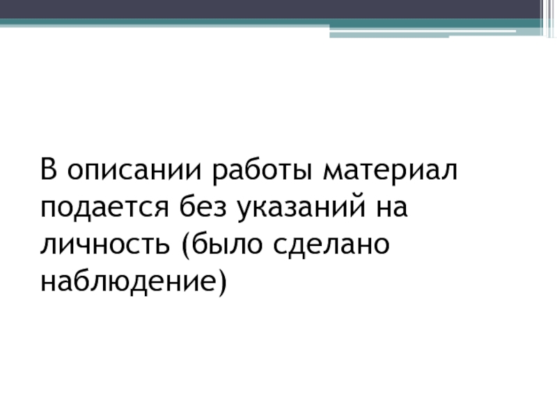 Слайд 31В описании работы материал подается без указаний на личность (было сделано