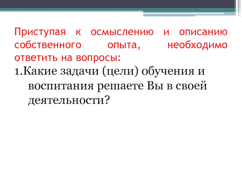 Слайд 10Приступая к осмыслению и описанию собственного опыта, необходимо ответить на вопросы: