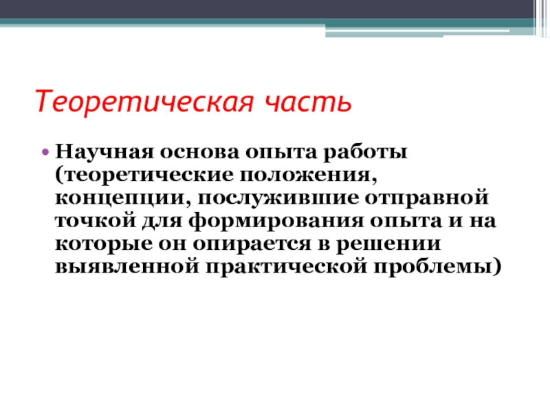 Научная основа опыта работы (теоретические положения, концепции, послужившие отправной точкой