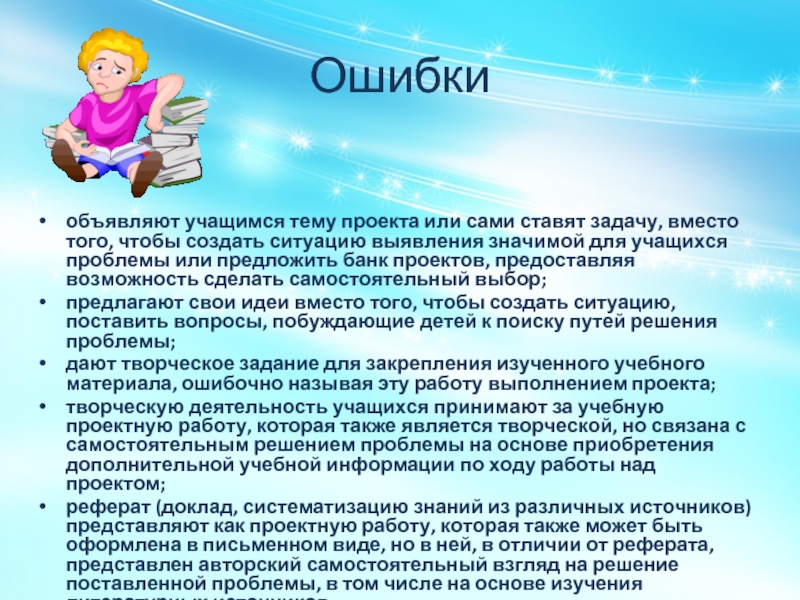 дают творческое задание для закрепления изученного учебного материала, ошибочно называя эту работу выполнением проекта;