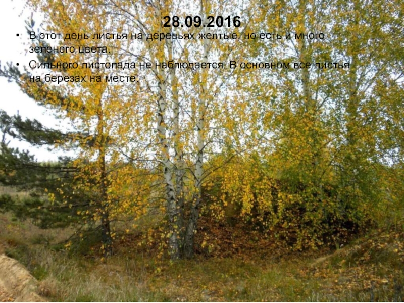 За это время не произошло сильно заметных изменений, разве что березы стали чуть желтее. Скорее всего, это связано с тем, что на улице похолодало.