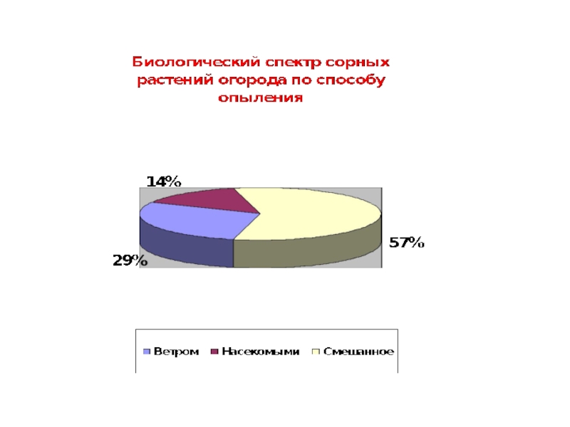 - биологический спектр по способу опыления (выявить долю растений, опыляющихся ветром и насекомыми)
