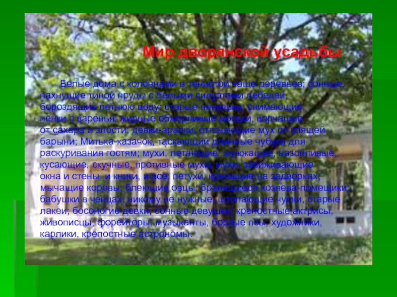 Слайд 5Мир сельской усадьбы был воспет классиками русской литературы: Гоголем в «Мертвых