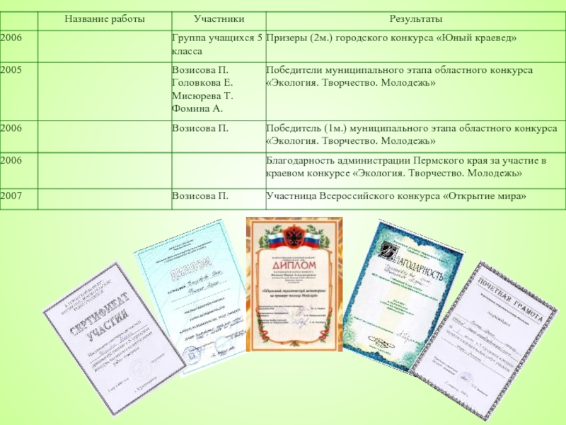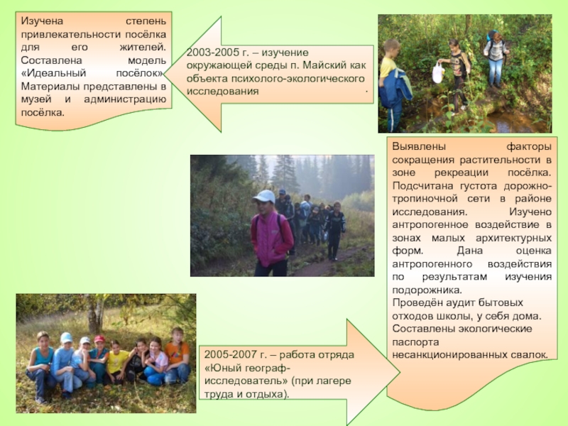 2005-2007 г. – работа отряда «Юный географ-исследователь» (при лагере труда и отдыха).