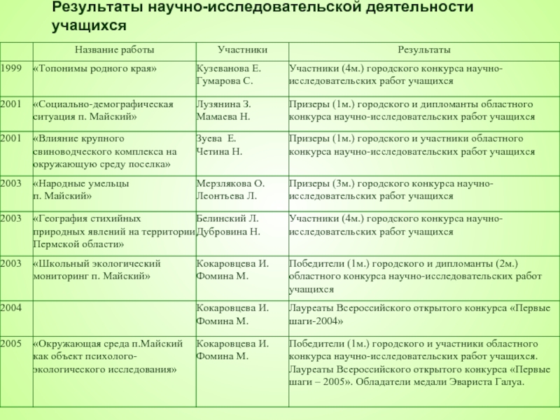 2002-2003 г. – изучение географии стихийных природных явлений на территории Прикамья.