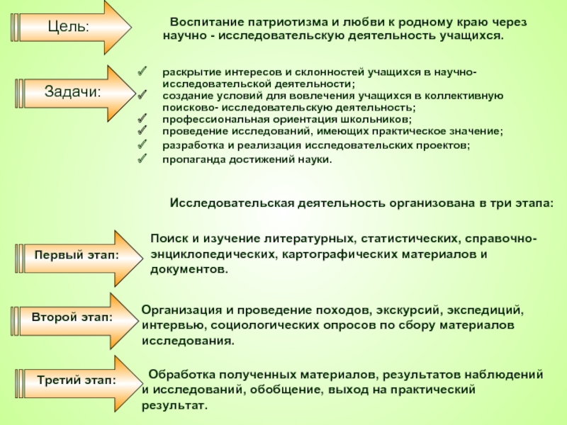 Воспитание патриотизма и любви к родному краю через научно - исследовательскую деятельность учащихся.