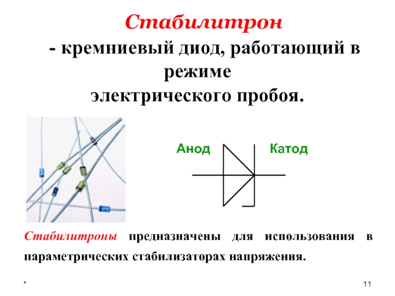 Коэффициент стабилизации параметрического стабилизатора напряжения на полупроводниковом стабилитроне: Кст = 5 – 50