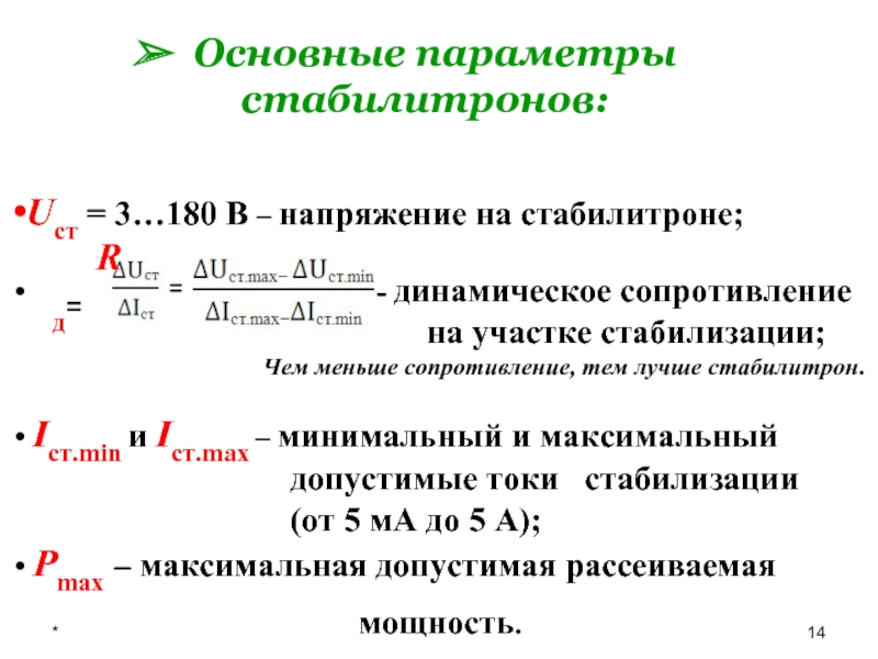 тока стабилитрона Iст.