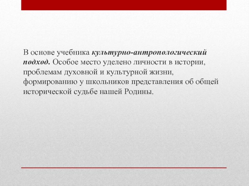 Слайд 12В основе учебника культурно-антропологический подход. Особое место уделено личности в истории,