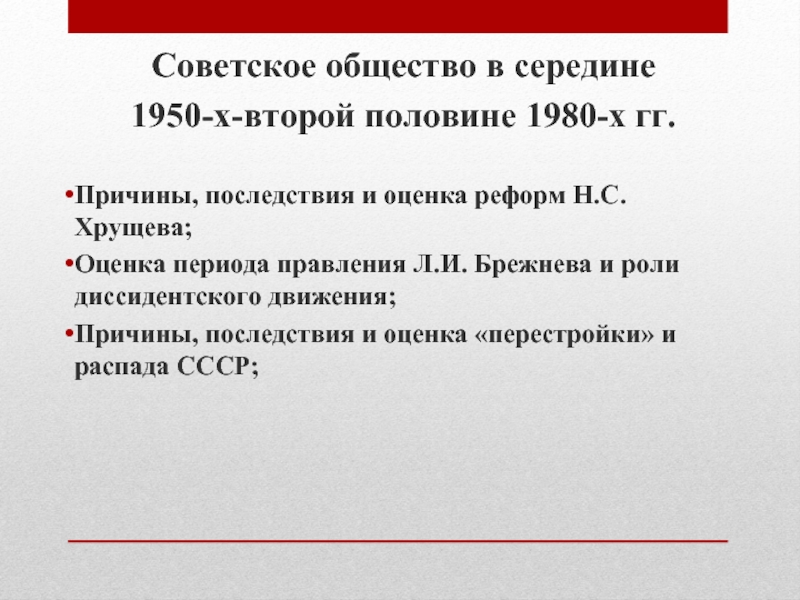 Оценка периода правления Л.И. Брежнева и роли диссидентского движения;