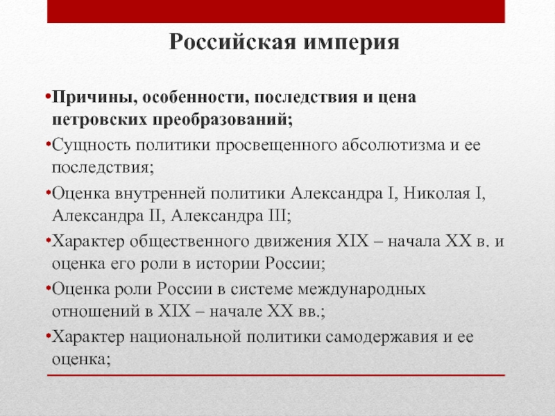 Оценка роли России в системе международных отношений в XIX – начале ХХ вв.;