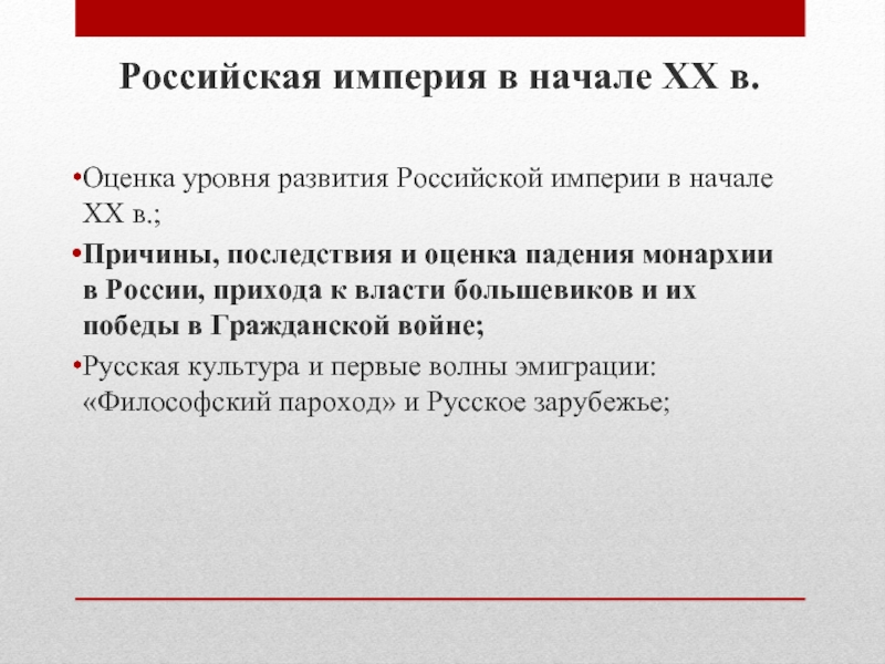 Причины, последствия и оценка падения монархии в России, прихода к власти большевиков и их победы в Гражданской войне;