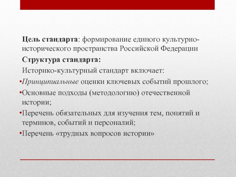 Слайд 8Цель стандарта: формирование единого культурно-исторического пространства Российской Федерации