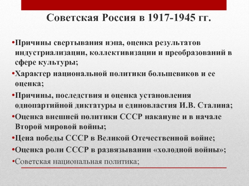 Причины, последствия и оценка установления однопартийной диктатуры и единовластия И.В. Сталина;