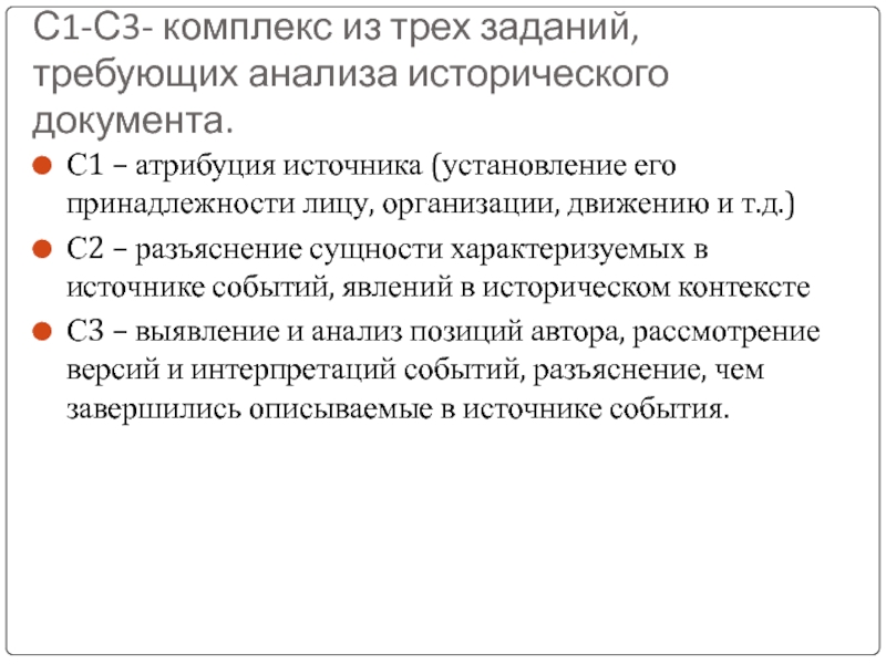 Слайд 10 С1-С3- комплекс из трех заданий, требующих анализа исторического документа.