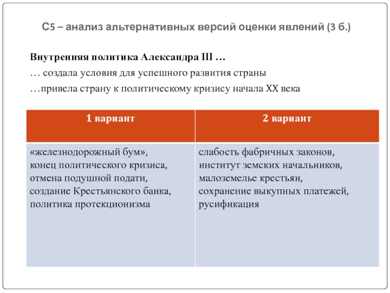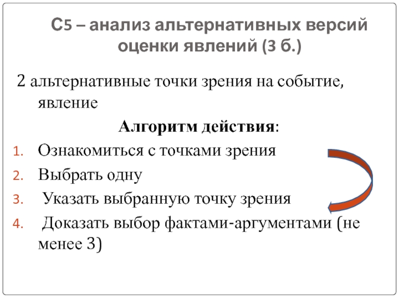 Слайд 13С5 – анализ альтернативных версий оценки явлений (3 б.)