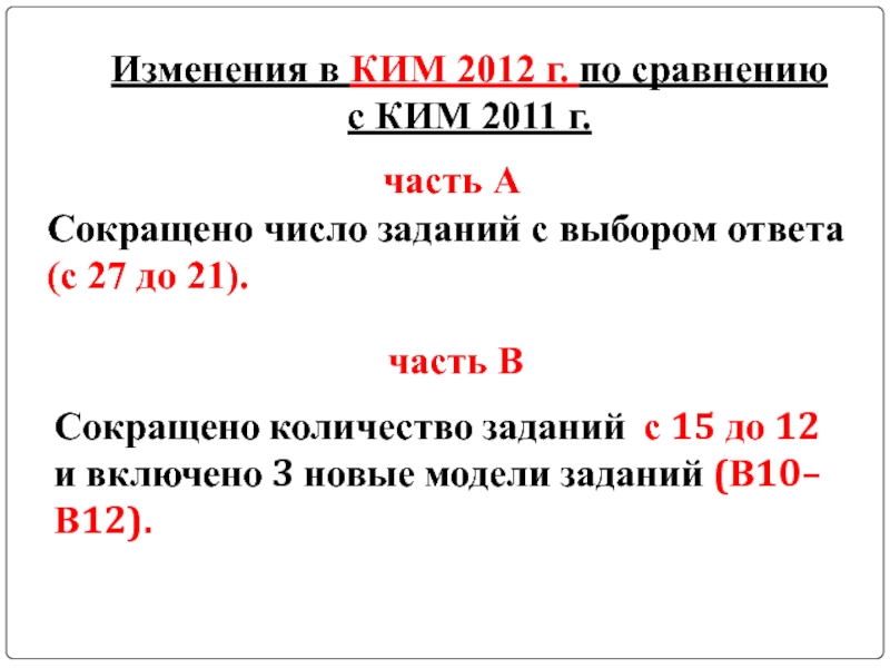 Изменения в КИМ 2012 г. по сравнению с КИМ 2011 г.