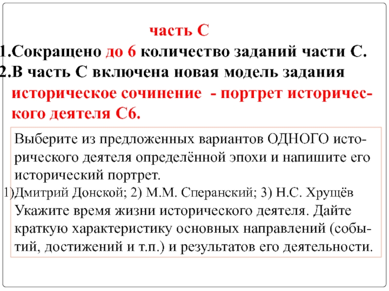 новая модель задания историческое сочинение - портрет историчес-кого деятеля С6.